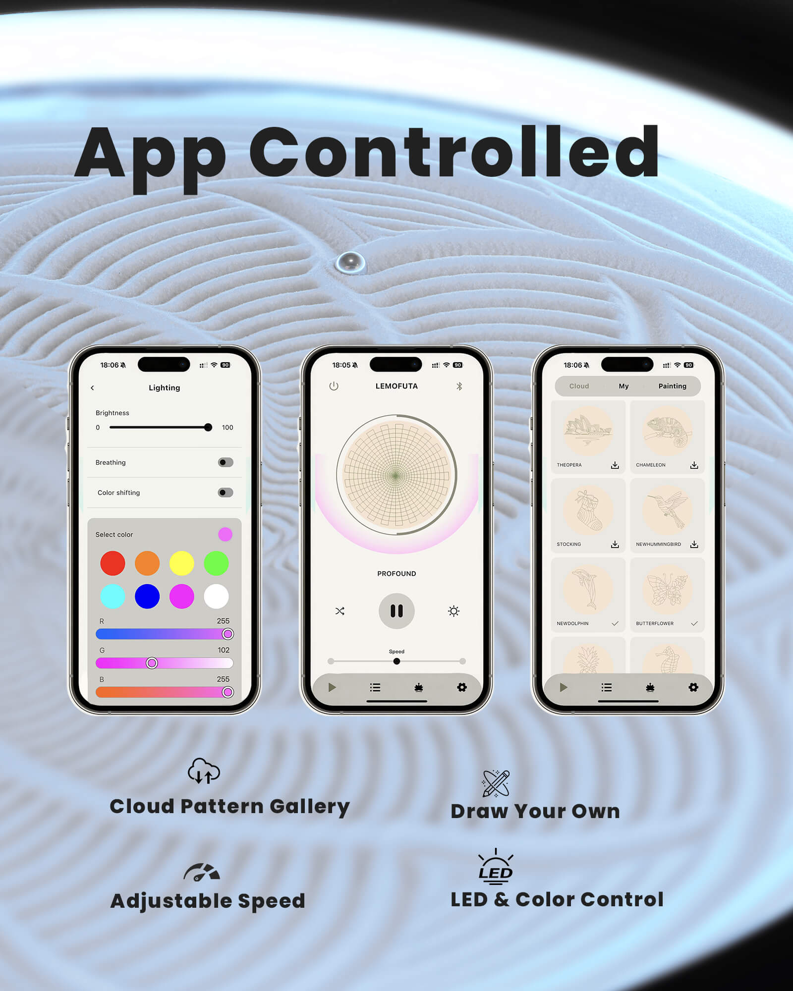 Lemofuta Smart Zen Garden is a kinetic sand art canvas crafted to bring calm, continuous motion into modern living spaces.