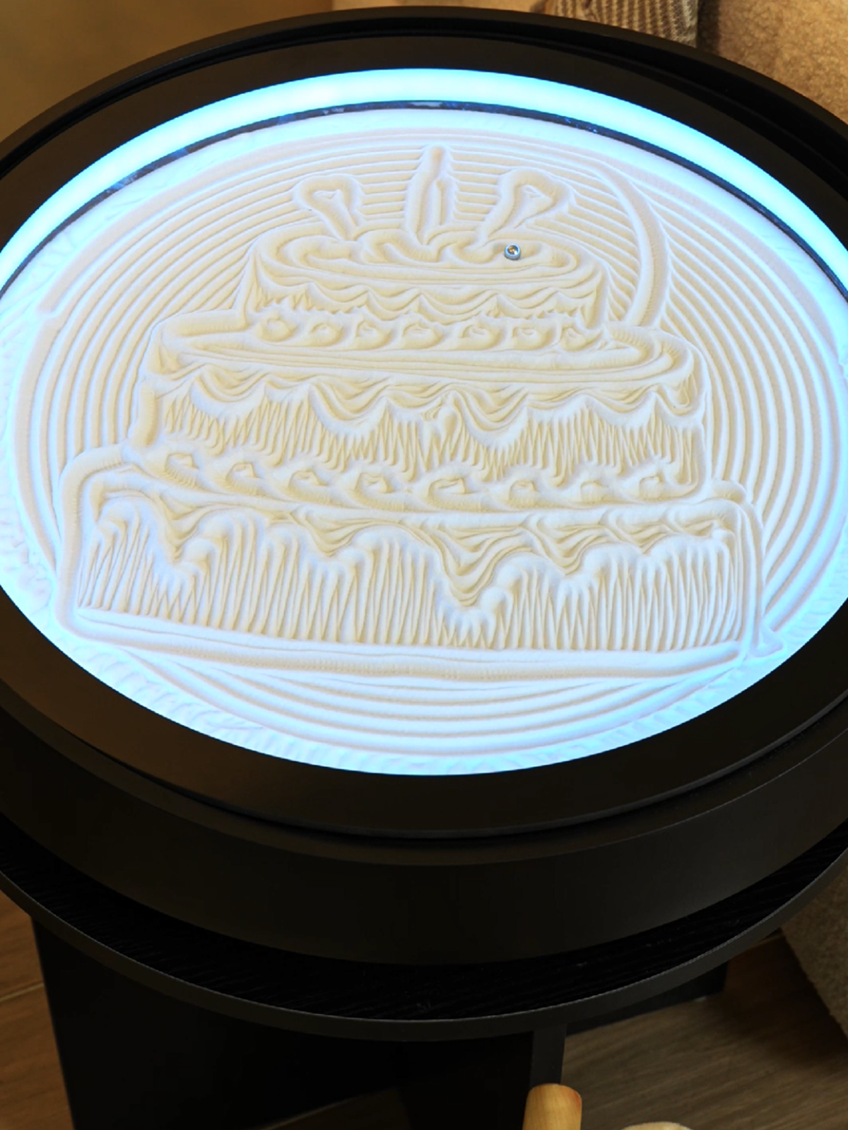 Create your own sand drawings through the app and watch them come to life in flowing sand, illuminated by soft ambient light. Perfect for meditation, creativity, and relaxation.