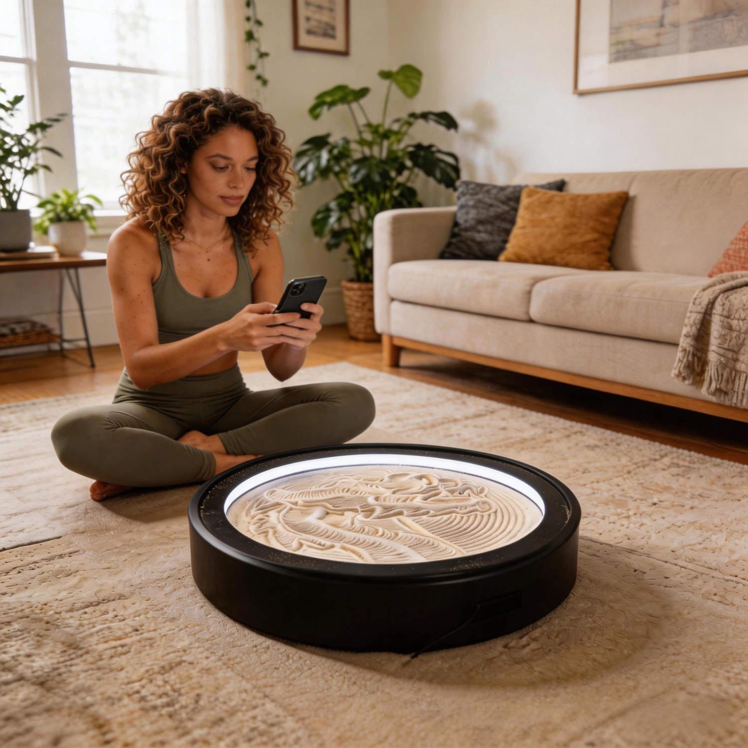 Lemofuta Smart Zen Garden is a kinetic sand art canvas crafted to bring calm, continuous motion into modern living spaces.